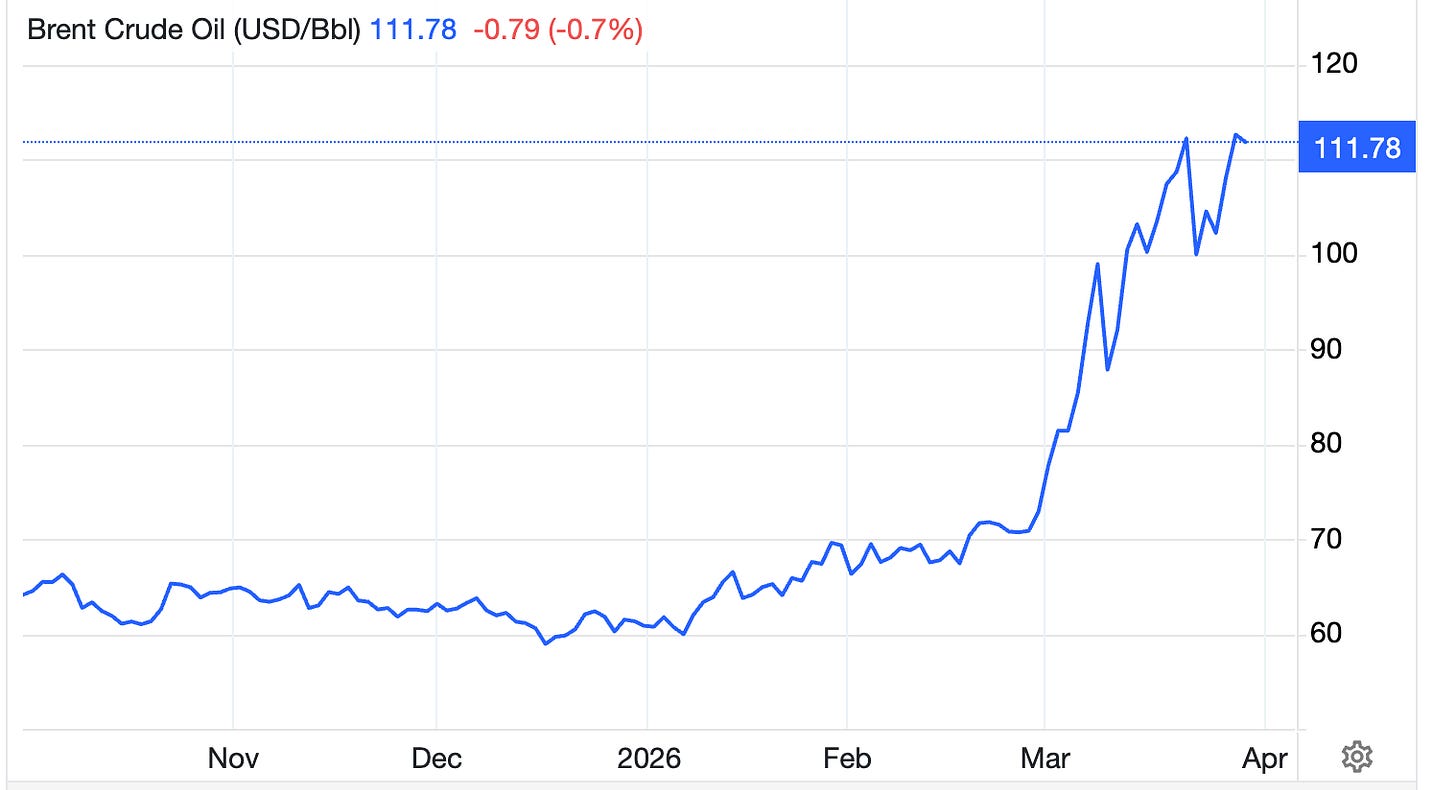 There are two main sources of uncertainty. The first is that we don’t know how much oil will be able to escape the Gulf. Oil supplies are now much reduced, but not by the full 20 million barrels of oil per day that used to flow through the Strait of Hormuz. The Saudis have a pipeline that allows them to send some of their oil to the Red Sea; Oman has a pipeline that transports oil around the Strait. And Iran is still allowing millions of barrels of its oil to pass through. Whether all this “leaking” will continue depends on the course of the war.